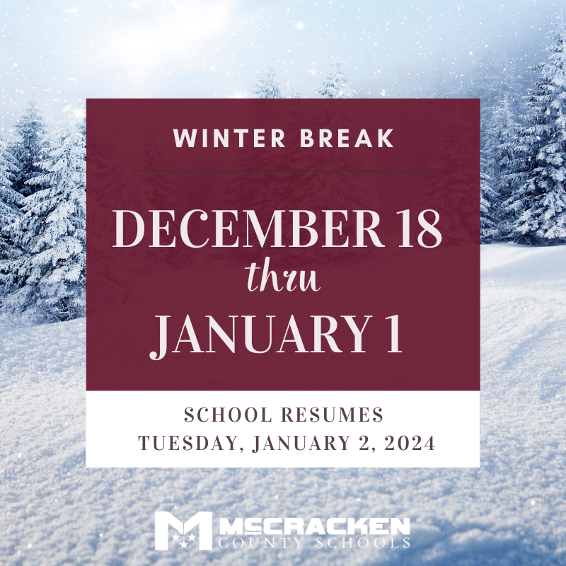 🎄✨ Happy Holidays from McCracken County Schools! 🎉 Wishing all of our students, families, and staff a joyful, relaxing, and well-deserved break. See you in the new year! 🎁❄️
